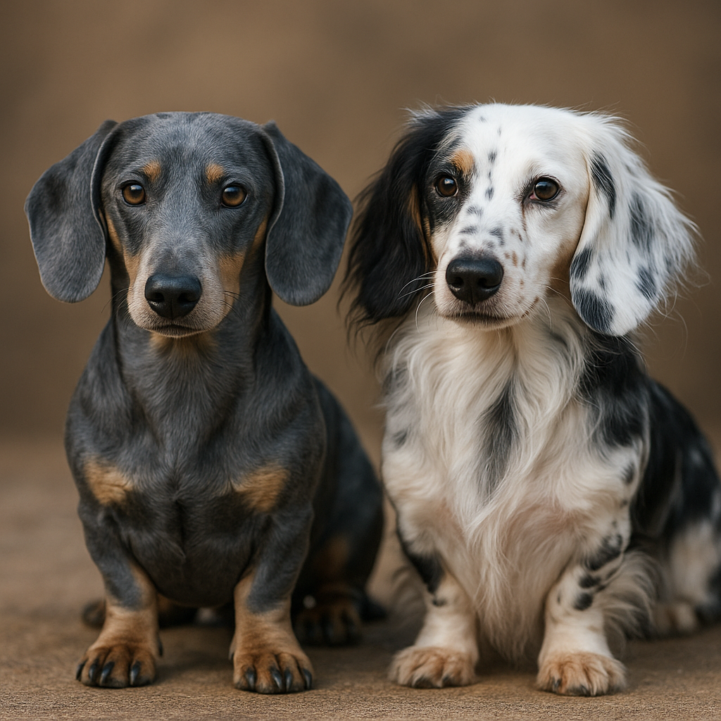 In Deutschland taucht der Begriff „amerikanischer Zwergdackel“ fast ausschließlich im Zusammenhang mit extremen Farbkombinationen auf. Gemeint sind Dackel in stark aufgehellten Tönen, mit Merle-Mustern, großflächiger Scheckung, viel Weiß oder Kombinationen mehrerer Farbverdünnungen. Diese Hunde wirken auf Fotos spektakulär, entsprechen aber weder dem FCI-Standard noch einer gesundheitsorientierten Zuchtidee.