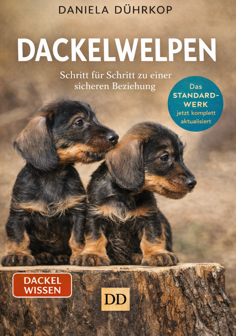 Im Mittelpunkt steht dabei immer der typische Dackel: klug, sensibel, mutig und oft überraschend eigenständig. Statt allgemeiner Welpentipps bekommst du hier dackelspezifisches Wissen, das wirklich zu einem kleinen Rauhaar-, Kurzhaar- oder Langhaardackel passt. Du erfährst, wie du von Anfang an eine gute Kommunikation entwickelst, warum Rituale für Dackelwelpen so wertvoll sind und wie du spielerisch die Grundlagen für Rückruf, Leinenführigkeit und entspannte Ruhephasen legst.