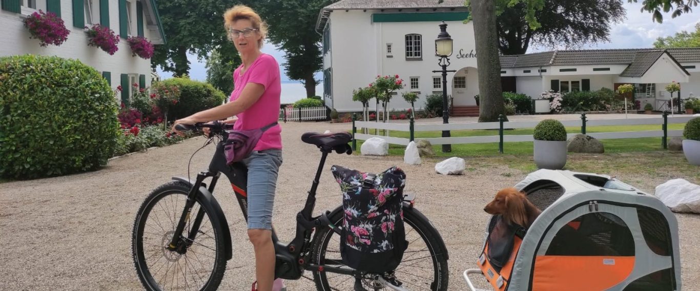 Ein Hundeanhänger bietet dem Dackel viel Platz. Der Hund kann sitzen, liegen und sich während der Fahrt bewegen. Viele Dackel entspannen sich dort schnell und nutzen den Anhänger auch zum Schlafen. Auf ebenen Radwegen rollt der Anhänger ruhig hinter dem Fahrrad her, das Fahrgefühl bleibt gleichmäßig und stabil.