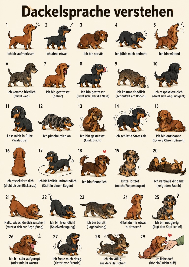 Verständnis ist der erste Schritt zu besseren Beziehung zum Dackel. Ich habe einige Bücher darüber geschrieben, die Auswahl findest Du hier Dackelbücher
