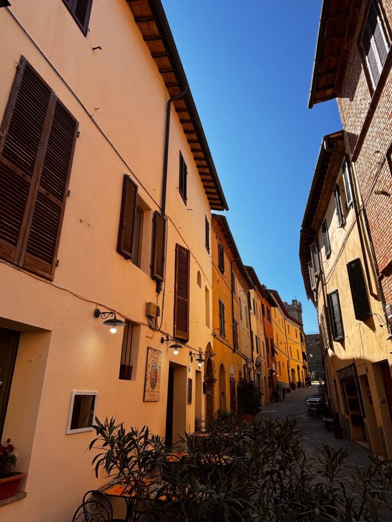 Ganz ähnlich ging es weiter in Montalcino. Auch hier steigt man durch alte Gassen, sieht über ein Meer aus Weinbergen und hat das Gefühl, in eine Postkartenwelt hineingelaufen zu sein. Beide Orte sind typisch für das Val d’Orcia – voller Charakter, reich an Geschichte und gleichzeitig so lebendig, dass man gar nicht entscheiden kann, wo man zuerst schauen soll. Für Wohnmobilreisende mit Hund sind Montepulciano und Montalcino echte Höhepunkte, weil sie zeigen, wie kraftvoll, farbig und einladend diese Region wirkt, sobald man sie zu Fuß erkundet.
